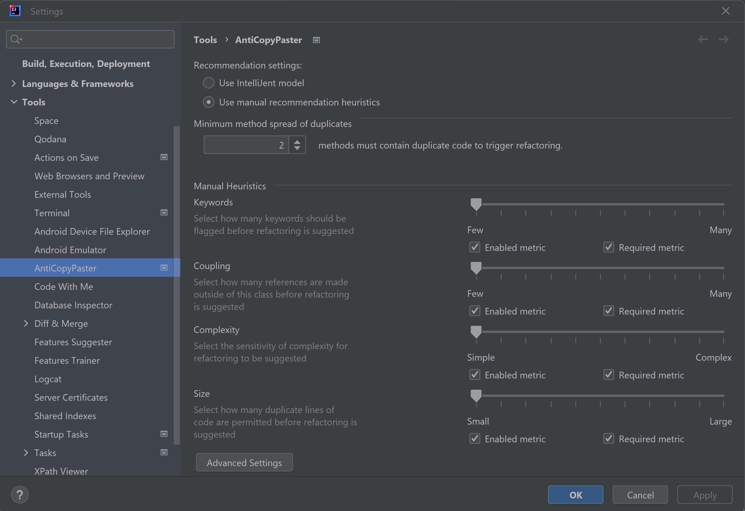 AntiCopyPaster is an open-source plugin for IntelliJ IDEA that automatically detects copied and pasted code and suggests an appropriate extraction.